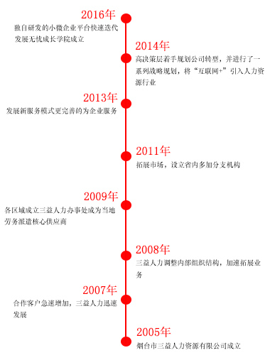 2008年8月,鄄城縣三益人力資源開發(fā)有限公司正式成立,鄄城公司的成立為公司今后的發(fā)展發(fā)揮重要作用。煙臺(tái)三益人力資源有限公司總部于2009年07月06日在煙臺(tái)工商局注冊(cè)成立。在公司發(fā)展壯大的10年里,我們始終為客戶提供好的產(chǎn)品和技術(shù)支持、健全的售后服務(wù)。公司先后在三十里堡、科信大廈、業(yè)達(dá)智慧谷、天宇市場開設(shè)了店鋪。2017年3月,三益威海分公司成立,大大拓寬了我們的國內(nèi)市場。